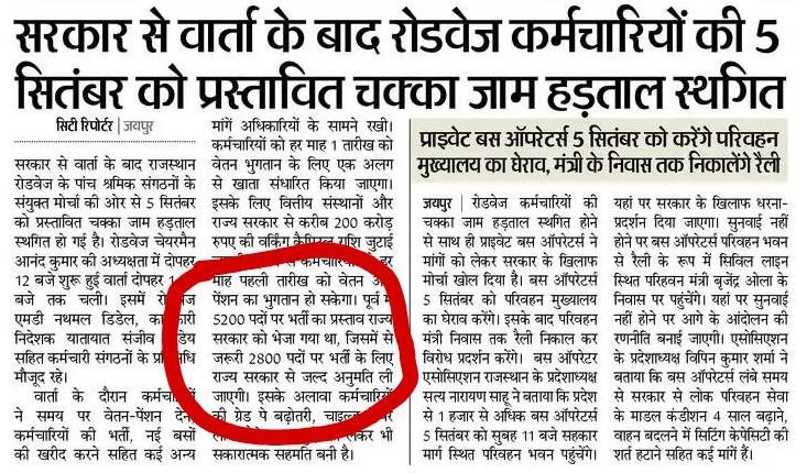 Recruitment will be done on 2800 posts in Rajasthan Roadways