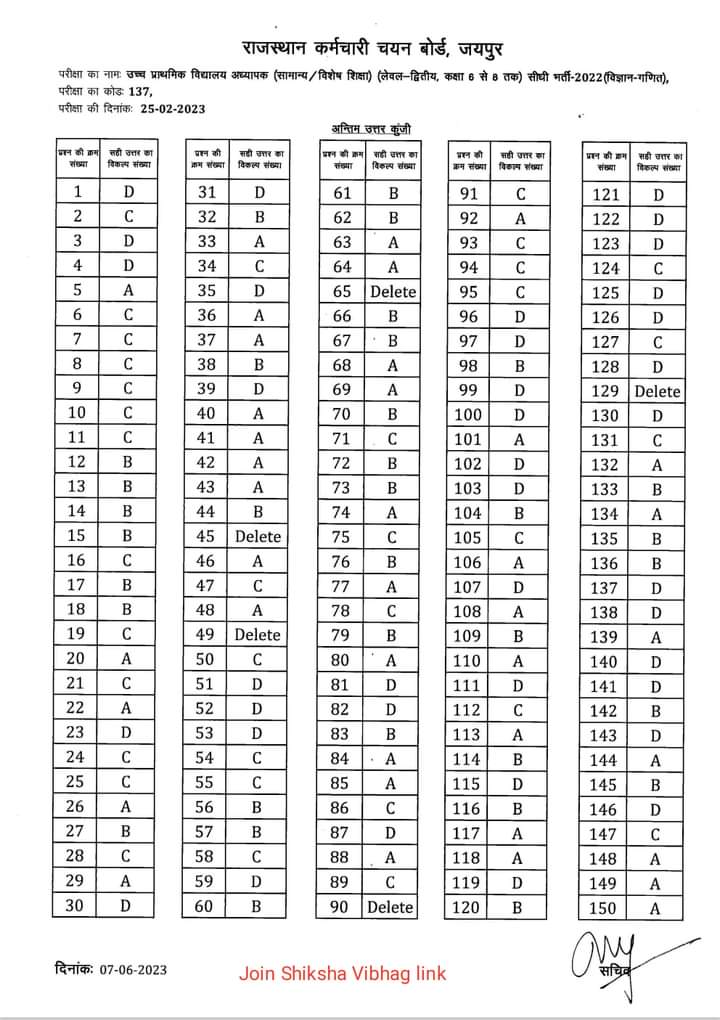 REET Mains Level 2 Result 2023 Maths Science Subject